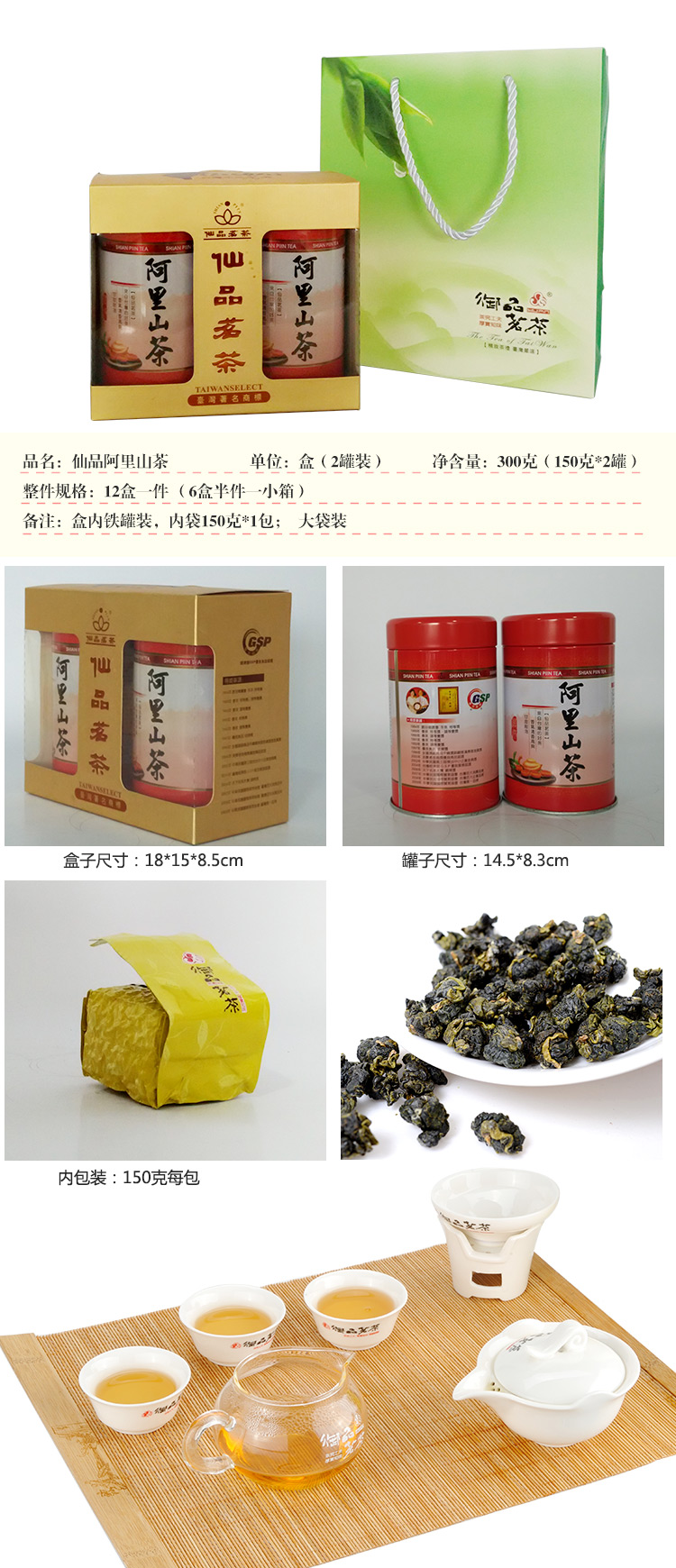 因产于台湾千峰万峦,山清水秀的阿里山而著称,终年云雾缭绕,气候凉爽宜人,土质肥沃海拔在1500-2000公尺,适合茶树生长。具有色泽碧绿香气飘逸,及宜人的韵味;深受茶人的喜爱。