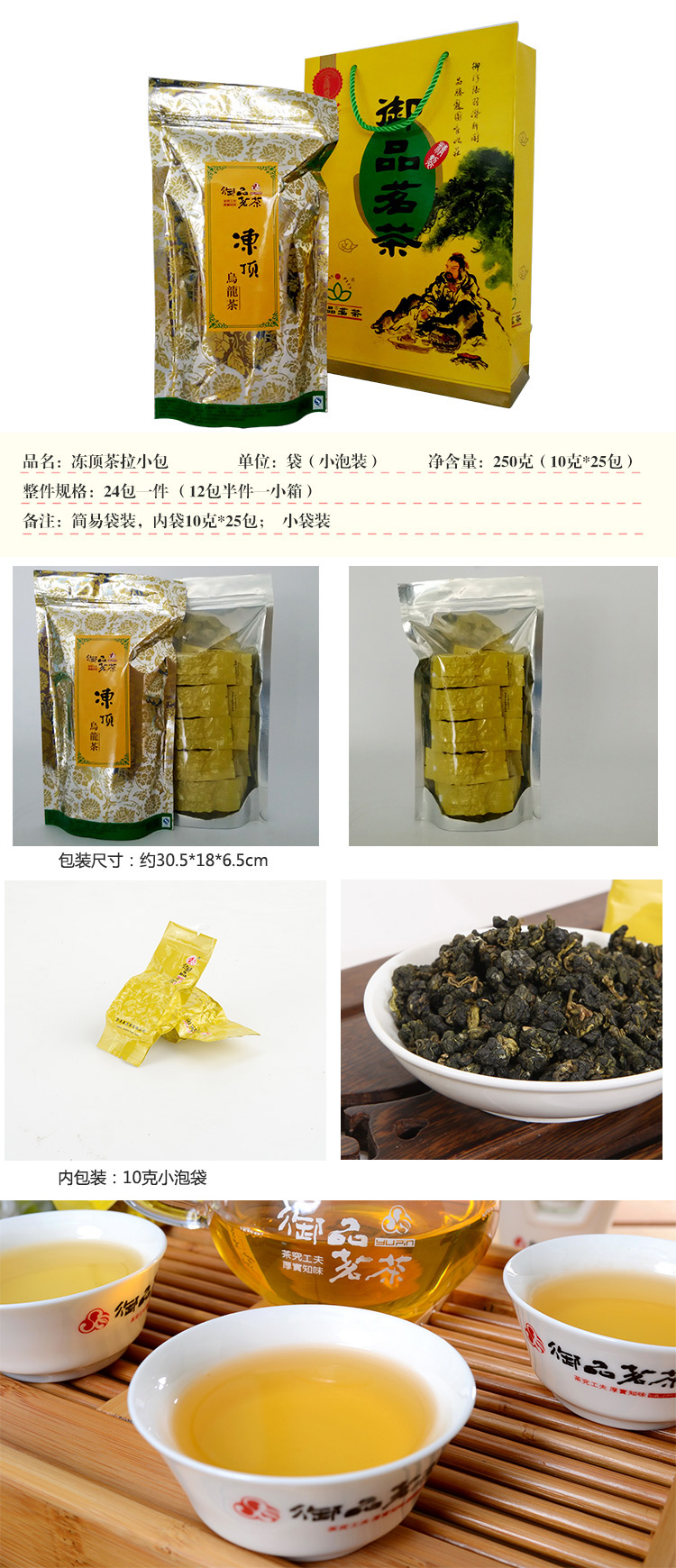 商品特色:产于台湾南投县鹿谷乡冻顶山上,四季气温低,终年云雾缭绕,因此茶叶优越异常,在国际上享有盛名,属轻焙火,中发酵,呈球形状,茶汤色泽金黄亮丽,香气高扬,回甘生津,清香扑鼻,富有活性,且经久耐泡,高温冲泡最佳。